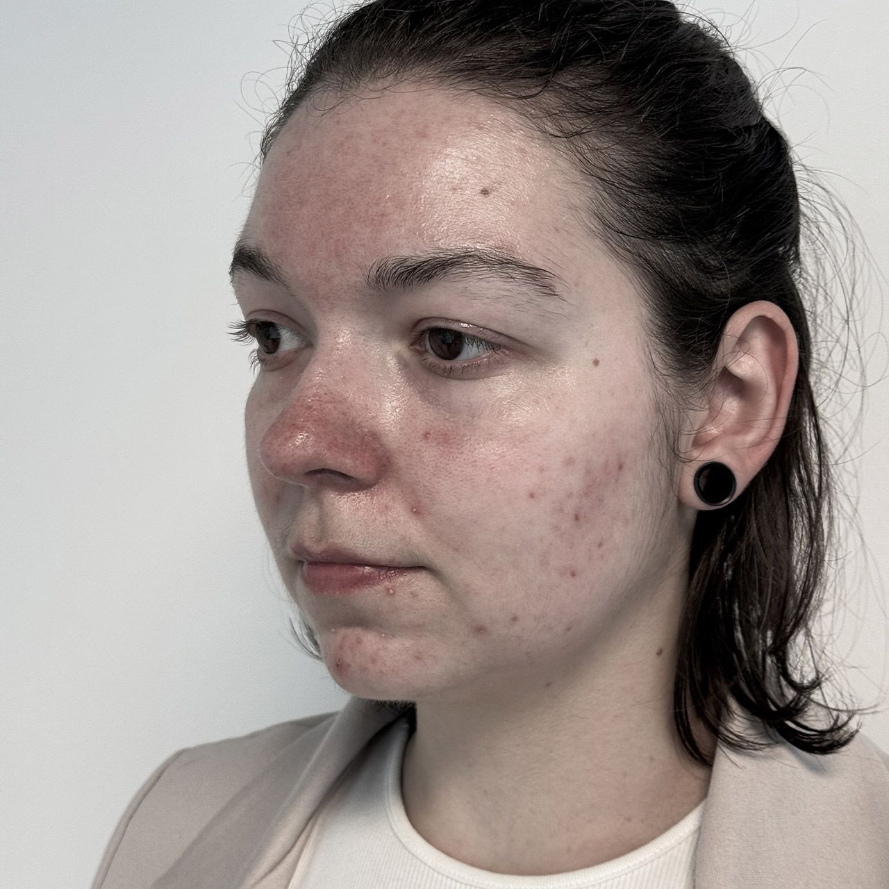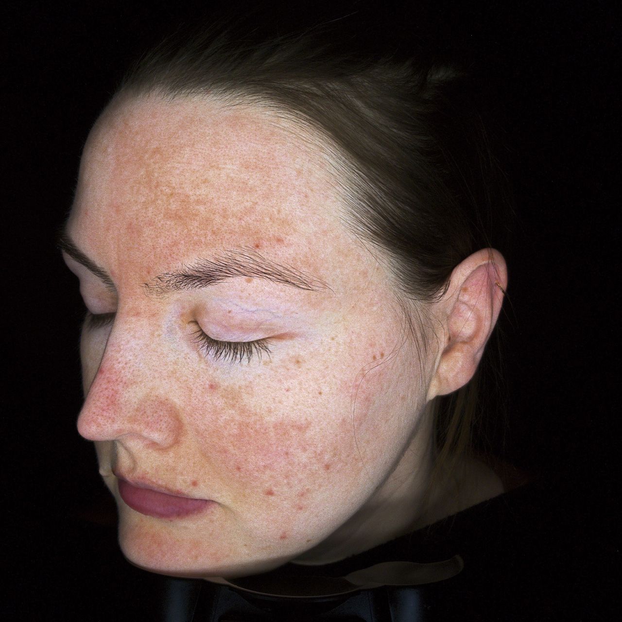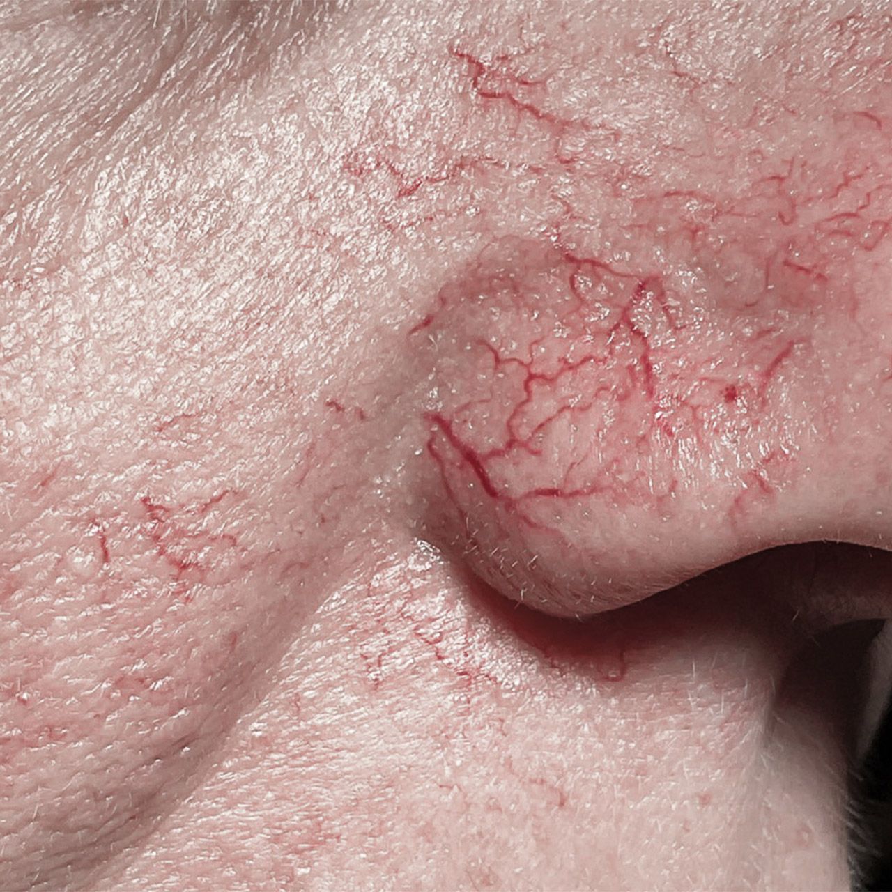 Couperose beschreibt eine frühe Vorstufe oder milde Form der Rosazea. Sie zeigt sich meist durch dauerhafte Rötungen und erweiterte, sichtbare Äderchen, vor allem an Wangen, Nase und Kinn. Die Haut reagiert empfindlich auf Hitze, Kälte oder Alkohol, bleibt dabei aber meist frei von Entzündungen.