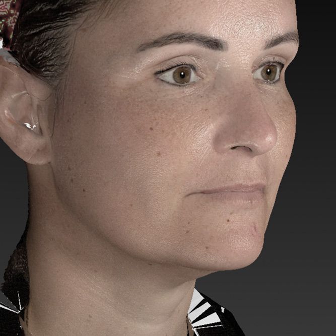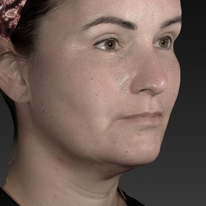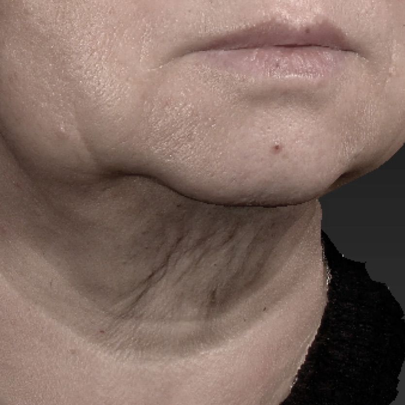 Gesicht, Tränensack, Augenregion, Brauenlift, Kieferlinie, Unterkieferkontur, Hals, Dekolleté, Körper